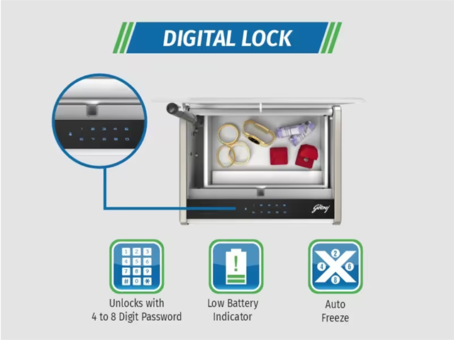 Digital Lock - Safe unlocks with a unique 4-8 digit password.